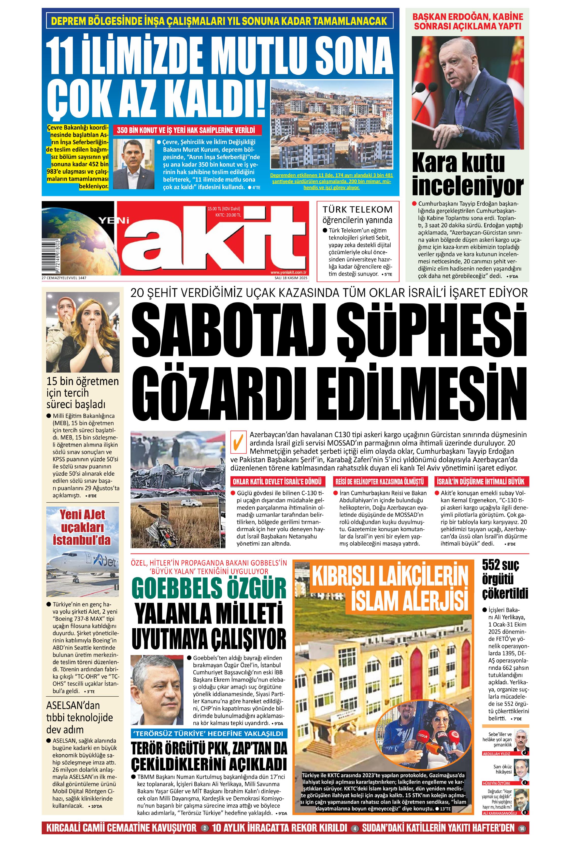Diğer il ilçelere ait yerel gazete manşetlerini inceleme için aşağıdan il seçimi yapabilirsiniz.
