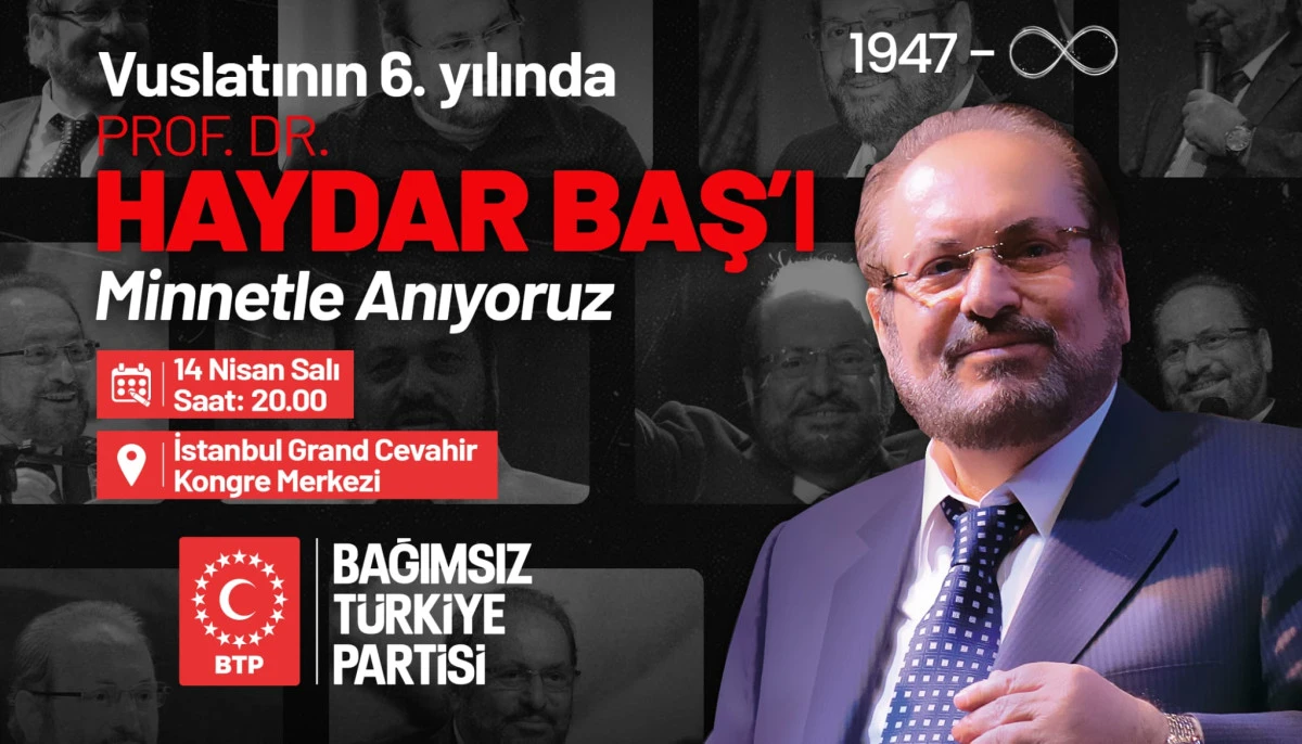 BTP Genel Başkanı Hüseyin Baş’ın da katılımıyla düzenlenecek olan büyük anma programı ise 14 Nisan Salı günü İstanbul Grand Cevahir Kongre merkezinde yapılacak.
