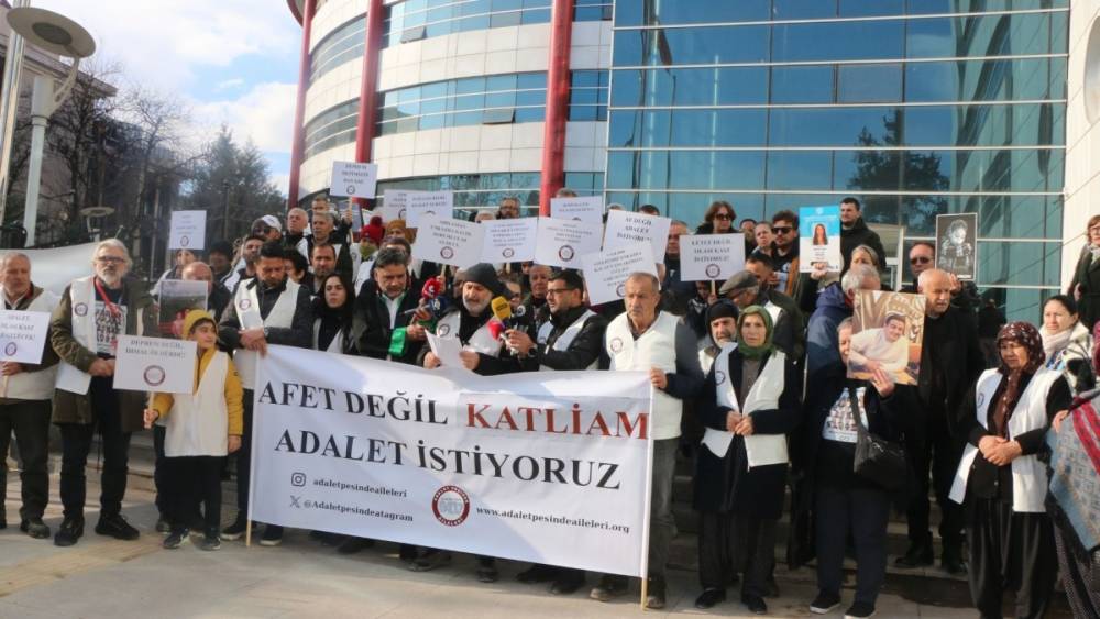 Adalet Peşinde Aileleri Platformu, Adıyaman Adliyesi önünde düzenlediği basın açıklamasıyla, depremde hayatını kaybeden yakınları için adalet talebinde bulundu. Platform adına açıklama yapan Adalet Peşinde Aileleri Platformu Adıyaman İl temsilcisi Celal Gezer ve Adalet Peşinde Aileleri Platformu Sözcüsü Döne Kaya, sorumluların olası kast kapsamında yargılanmasını istediklerini vurguladı. Kaya ve Gezer, "Depreme dayanıklı yapılar inşa etmek kanunen zorunludur. Bunu bile bile yapmayanlar, sadece hata yapmış kişiler değildir; bilinçli bir şekilde insan hayatını hiçe sayanlardır" dedi.