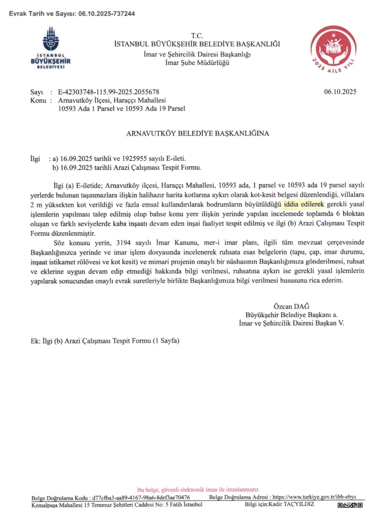 Kişisel mülkiyetine dair iddiaları da net bir dille yalanlayan Başkan Candaroğlu, “Evimin çatısından, penceresinden, manzarasından bahsediyor. Buraları belediye başkanı olmadan çok önce aldım. Biz buraya yeni gelmedik; 50 yıldır Arnavutköy’deyiz.” dedi. Başkan, söz konusu yapının 150 metrekare taban oturumuna sahip olduğunu belirterek, “Silivri’deki şahsın Boğaz’a nazır malikanesinin garajı kadar bile değil. Ben Sarıyer’de üç villa almadım, birilerine malikanelerimi döşetmedim. İBB geldi, santim santim ölçtü, bir usulsüzlük bulamadı. İşte belgesi.” diyerek iddiaları çürüttü.