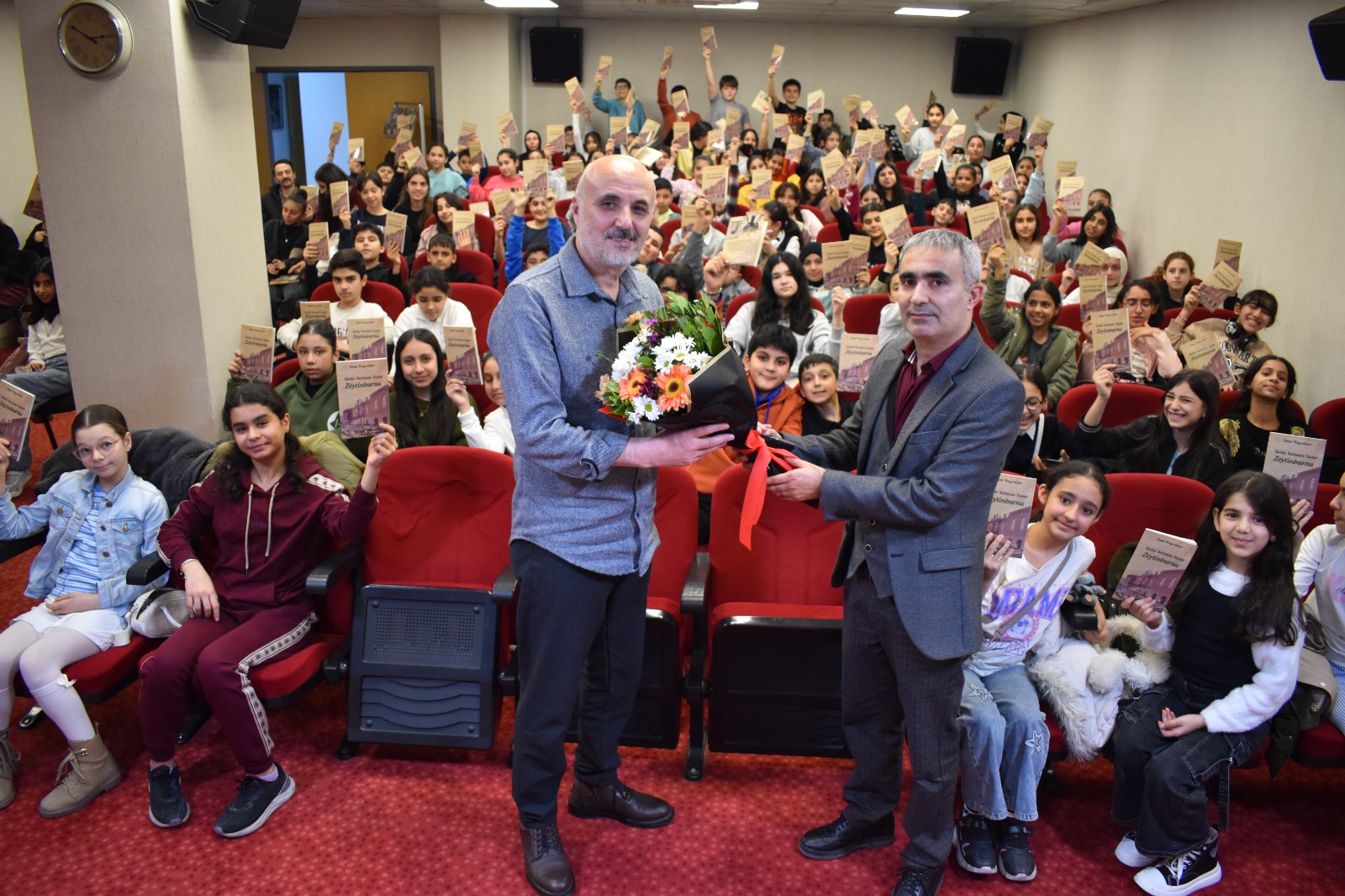 Eskiden Hristiyanlar, Rumlar ve Ermenilerin Zeytinburnu’nda komşu olarak yaşadıklarını ve farklı kültürlerin bir arada olmasının edebiyatımıza, mimarimize ve daha birçok alana olumlu katkı sağladığını da dile getiren Bayraktar, Zeytinburnu’nda efsane olarak dolaşan hikâyelerden çocuklara kesitler anlattıktan sonra “Tarihe Yaslanan Taşlar Zeytinburnu” kitabını imzalayarak çiçek takdimi eşliğinde söyleşisini tamamladı.