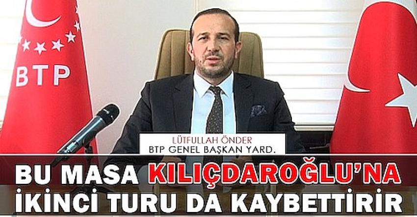 BTP olarak Millet İttifakı’na destek olmalarının nedeninin parlamenter sisteme geçiş vaadi olduğunu ifade eden Önder, TBMM seçimlerinde ortaya çıkan sonuçla Altılı Masanın Güçlendirilmiş parlamenter sistem vaadinin boşa çıktığını ifade etti ve “Kılıçdaroğlu aynı isimlerle yürürse ikinci turu da kaybeder” dedi.