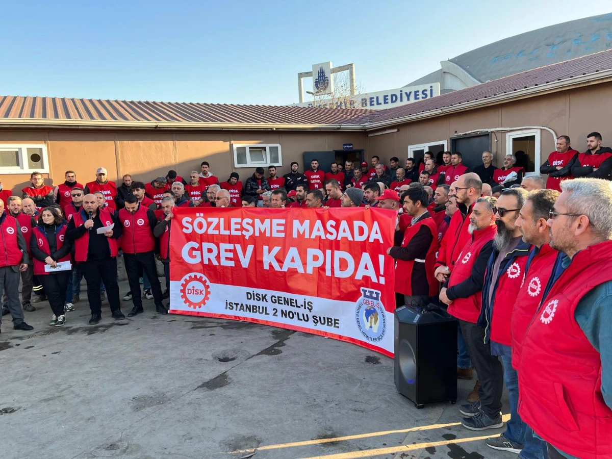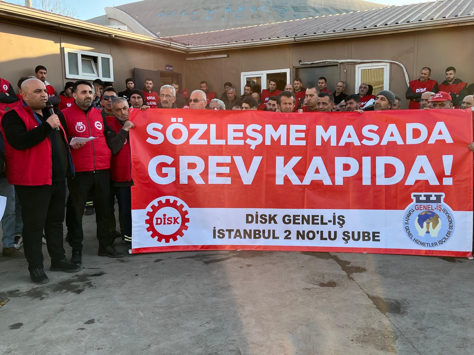 DİSK Genel-İş İstanbul 2 No’lu Şube Başkanı Süreyya Doğan, Bakırköy Belediyesi ile sürdürülen toplu iş sözleşmesi görüşmelerinde yaşanan anlaşmazlık nedeniyle Temizlik İşleri Müdürlüğü Şantiyesi önünde basın açıklaması yaptı. "Sözleşme masada, grev kapıda" pankartıyla yapılan açıklamada, temizlik işçilerinin temel haklarının da görmezden gelindiği belirtildi.