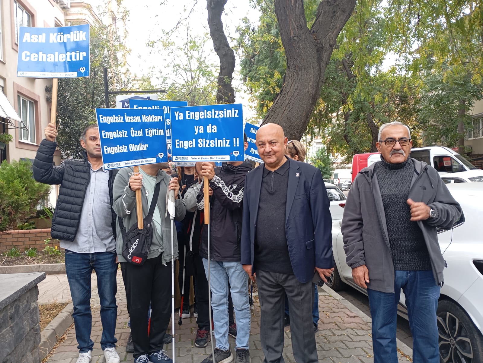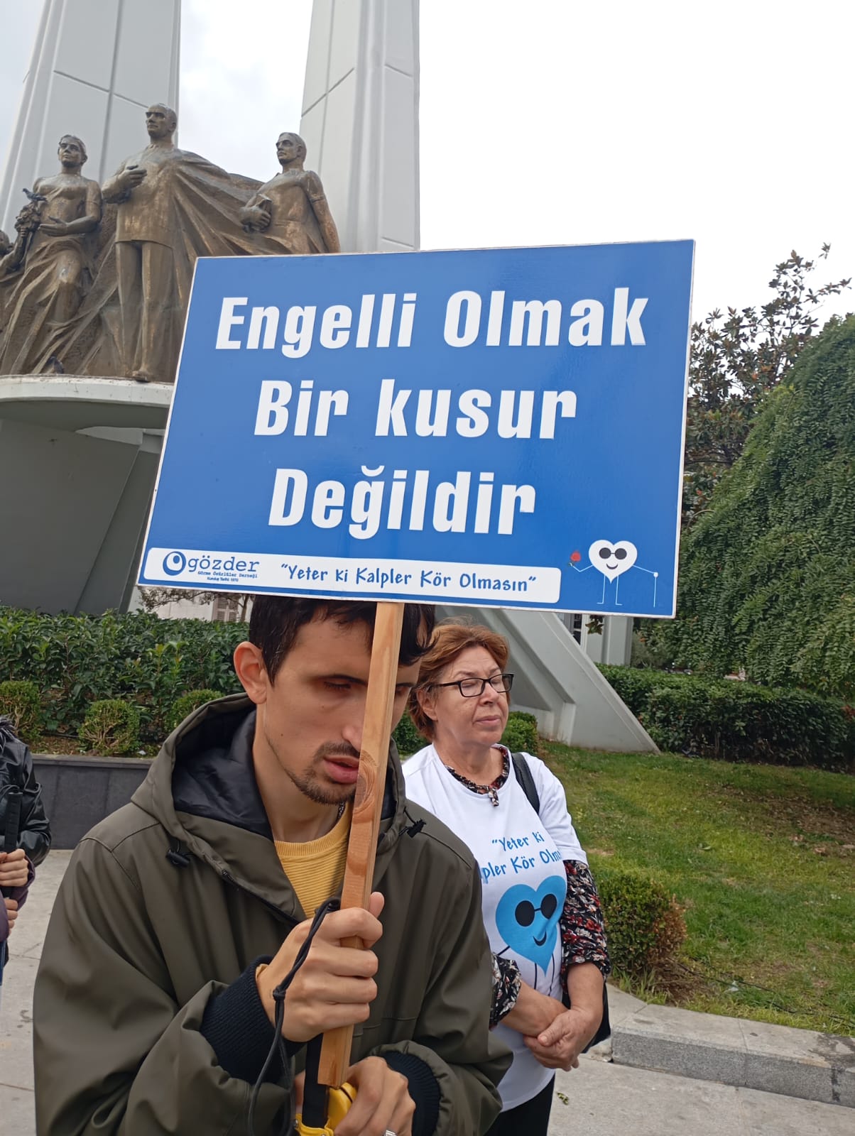 Basın açıklaması öncesi konuşan GÖZDER Başkanı Ali Varlık, kendilerine destek vermek amacıyla etkinliklerine katılan herkese teşekkür ederek, engellerin ancak farkındalıkla ve empati ile hep birlikte aşılabileceğini söyledi.