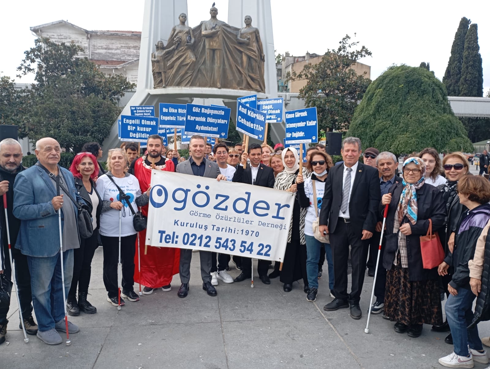 Kamu yararına çalışan dernekler statüsünde olan Görme Özürlüler Derneği, merkezi Zuhuratbaba Mahallesi’nde bulunan merkez binaları önünde toplanarak, Özgürlük Meydanı’na kadar farkındalık yürüyüşü düzenledi. CHP İlçe Başkan Yardımcısı Hamide Yazıcı ve Semra Kurtuluş’un yanı sıra, CHP Kadın Kolu Başkanı Günay Mamati ve yönetiminin de katıldığı basın açıklamasına, Ak Parti İlçe Başkanı Ahmet Faruk Kuran ve yönetimi, Kartaltepe Mahalle Muhtarı Didem Koryürek ve çok sayıda gönüllü katıldı.