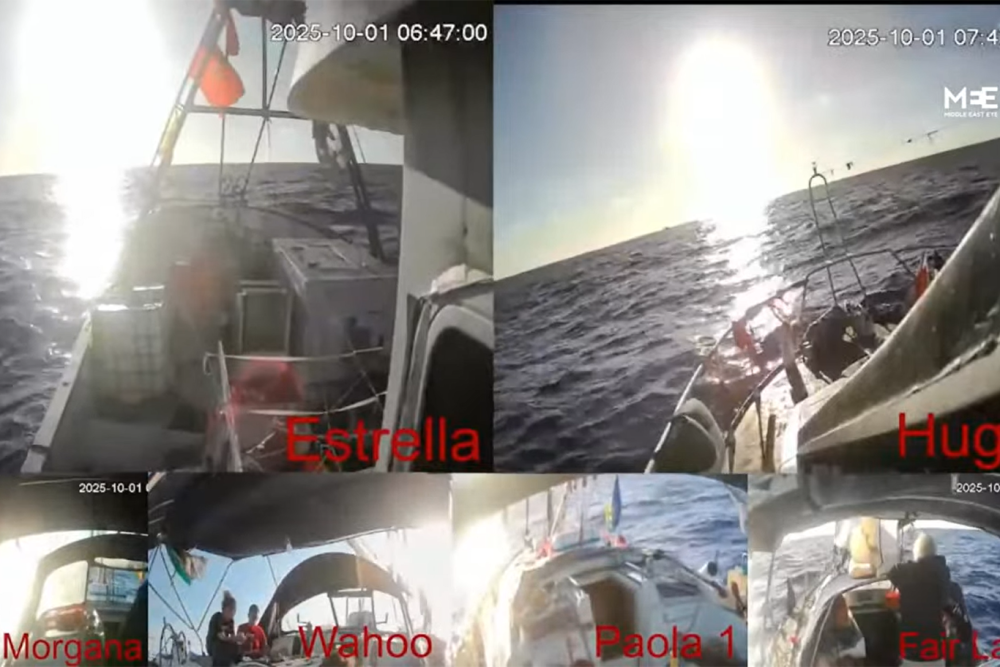 Global Movement To Gaza Türkiye, filonun Gazze'ye ilerlerken siyonist rejim donanmasına ait gemi ve Zodiac botların tehlikeli manevralarıyla taciz edildiğini, iletişimlerinin jammer benzeri cihazlarla hedef alındığını duyurdu. Filonun rotasından dönmeyeceği bildirildi.