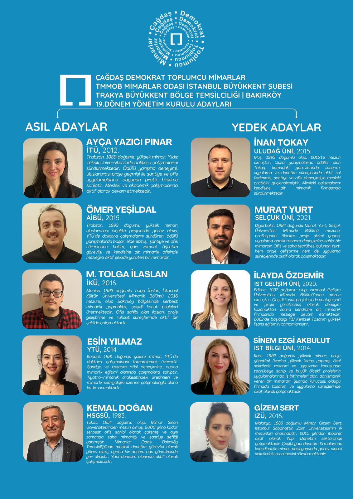 Mimarlar Odası Trakya Büyükkent Bölge Temsilciliği | BAKIRKÖY Yönetim Kurulu Aday Ekibi ise şu şekilde: