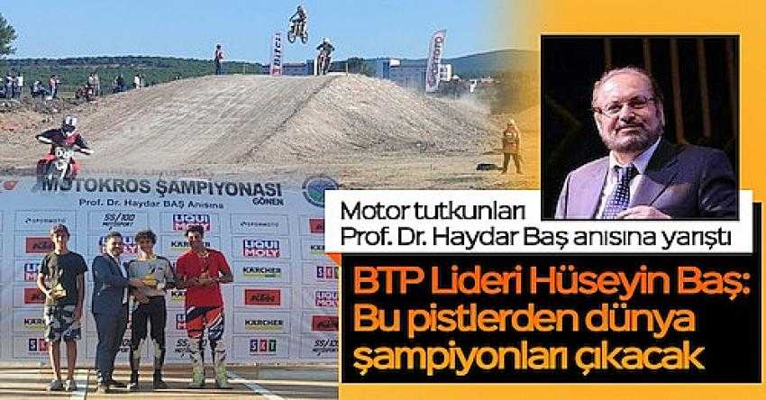 MX2 kategorisinde dereceye girenlere ödüllerini veren BTP lideri Hüseyin Baş, “Öncelikle kıymetli Gönen Belediye Başkanıma, Federasyon Başkanıma ve bu organizasyonda emeği geçen bütün arkadaşlarıma ve kıymetli ağabeyim Hayri Baş'a çok teşekkür ederim. Bunun anlamı çok büyük bizim için, merhum babam Prof. Dr. Haydar Baş anısına düzenlenen bir organizasyon oldu. Böyle güzide insanların olduğu bir sporun içinde olabilmek de bizim için ayrı bir mutluluk. Yarışmak insanı hayatta tutan şey, rekabet insanı ayakta tutan şey. Bu yarışlarla birlikte inşallah ülkemizi dünya arenasında temsil eden insanlar bu pistlerden çıkacak.“ dedi.