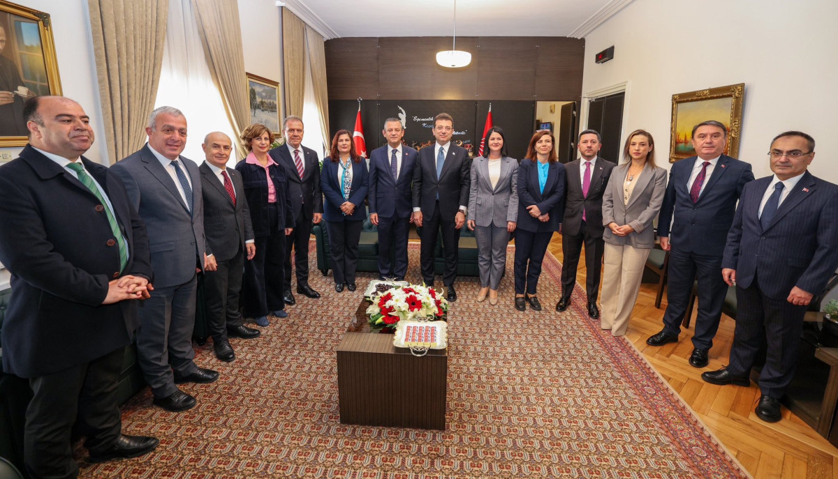 TBB Başkanı Ekrem İmamoğlu ve encümen üyeleri, iktidarın kayyım politikasına karşı yaptıkları ortak açıklamanın ardından, yaptıkları davete olumlu karşılık veren siyasi parti genel başkanlarıyla bir araya geldi. İmamoğlu ve TBB heyeti, bu kapsamda ilk olarak CHP Genel Başkanı Özgür Özel tarafından TBMM’deki makam odasında ağırlandı. Yaşanan süreci, “doğrudan demokrasiye karşı bir cinnet hali” olarak niteleyen Özel, “Ümit ediyorum, tüm genel başkanlarla yapılacak değerlendirmeler, aynı yapıcı yaklaşım içinde gerçekleşecektir. Meselenin partilere özgü bir mesele olmadığını, bir demokrasi meselesi olduğunu görmek ve Meclis çatısı altında, hepsini birden aynı ilkesel yerden savunmak en doğrusu. Hem bugün yapmış olduğunuz olağanüstü toplantıyı hem de toplantıdan sonra ilk gittiğiniz, başvurduğunuz yerin milletin meclisi olması son derece anlamlı, son derece özenli ve meseleyi en doğru yerden gören bir yaklaşım olarak değerlendiriyorum” dedi.