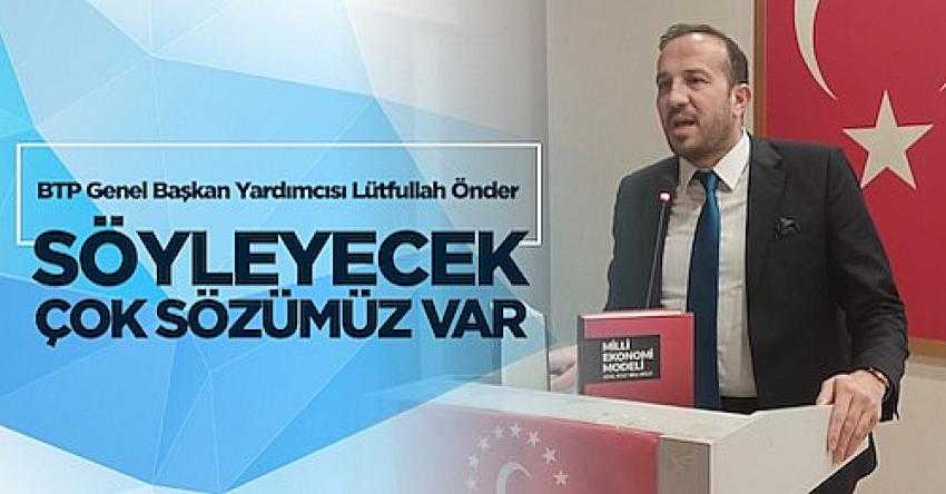 Lütfi Arıkan’ın yeniden il BTP başkanı seçildiği kongrede konuşan BTP Teşkilatlardan sorumlu Genel Başkan Yardımcısı Lütfullah Önder, “Bu millete hizmet edeceğiz, vatanımıza hizmet edeceğiz ve bu şekilde de son nefesimizi kazanacağız diye düşünen kadroları yani Bağımsız Türkiye Partisi'ni seçmemiz lazım ki kaderimiz değişsin.” dedi.