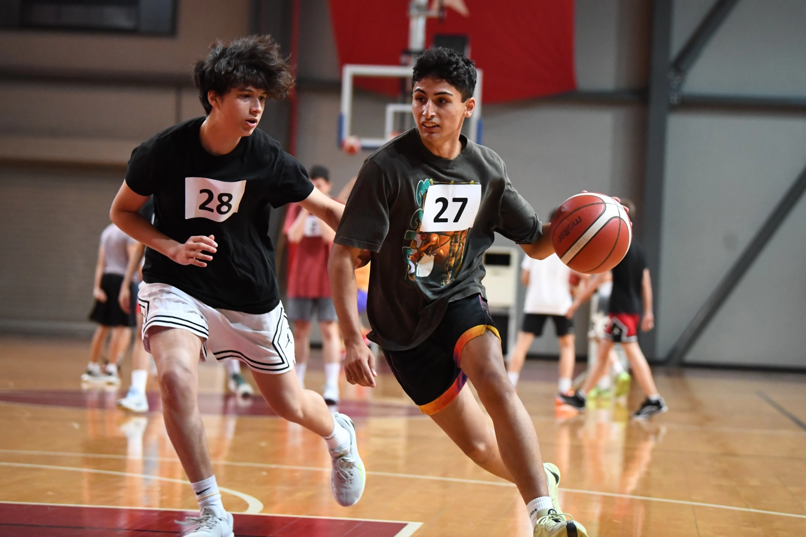 Kondisyonerler nezaretinde gerçekleştirilen fiziksel ölçümlerin (Boy-Kilo-Kulaç) ardından 3 farklı sahada temel basketbol hareketleri üzerine çalışmalar gerçekleştiren oyuncu adayları, fundamental çalışmalar, 1’e 1 ve 4’e 4 antrenman maçı yaparak seçmeleri tamamladı.