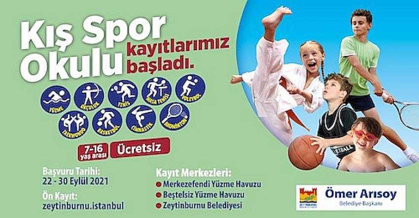 Zeytinburnu Belediye Başkanı Ömer Arısoy, Yaz Spor Okulları’nın kapanış töreninde yaklaşık 2.000 gence 9 farklı branşta sunulan eğitimlerin kış mevsiminde de devam edeceği müjdesini vermişti. Zeytinburnu Belediyesi Kış Spor Okulları, 7-16 yaş grubundaki gençlere basketbol, voleybol, tenis, masa tenisi, okçuluk, taekwondo, badminton, yüzme ve cimnastik dalında tek branş seçme imkanı verecek.